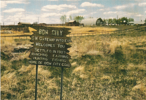 Located 12 miles south of the Trans-Canada Highway on Highway36 then about eight miles west along Secondary Road 539, Bow City was once a humming little coal-mining town. The district was opened for homesteading in 1907 and brought get-rich-quick promoters flocking to the area touting vast coal deposits. It was touted as the Pittsburg of the West. It appeared for a time that a genuine city would sprout on the plains but, unfortunately, the First World War came along, capital dried up and the much-ballyhooed project never materialized. Bow City received a small shot in the arm when strip mining began in 1932 then again during the Second World War when the Alberta government financed a new townsite on the south bank of the Bow River to house the miners who were keeping the coal flowing to fuel Canada’s considerable war effort. But after the war natural gas and fuel oil became the main heating fuels and coal was gradually phased out and the Bow City mines abandoned. H.B. Chenoweth I came across your site this evening, great to see someone is keeping the memory alive. Just a few comments or things to add to the Bow City page if you feel it is important. I uploaded a picture of the original sign on you website, the sign still welcomes people to Bow City today. The area was actually called Eyremore before the name was changed to Bow City, however I am not aware of the exact date. Behind the sign you can faintly make out the foundation of the old general store, next to that used to be a garage, I have found old oil cans and other parts in the field there in the past. The house in the background of the picture belonged to my Grandfather and is still in the family. I spent many months there in my childhood so I know the area well. My Grandfather worked in the coal mines and farmed the land in the area, he actually used to own or lease all of the land the old coal mines were situated upon. Unfortunately the last original building burned to the ground about 13 years ago in an accident. It was the garage where they fixed the mining equipment and the last time I was in there, many items from the mining days were still there, including the office with extensive records. Today there are some large slack piles and surface mine pits as the land was never reclaimed. The deep surface pits have been filled in with water and stocked with trout, a few anglers camp there each summer to fish the ponds. The underground mine is a short trip across the river, the only evidence of its existence is a small pile of dirt over the shaft in the middle of a field. In the middle of the prairie, one can make out the location of the original highway and dirt piled by the railway for tracks before the project was abandoned. There are still a handful of residents that live in the area, some of which have built houses on the old mining camp location along the river's edge. The original bridge built around 1912 was taken down a few years ago to make way for a larger one, it was not wide enough for 2 lanes and the deck was still surfaced with wood. There is also a nice small campground on the rivers edge with a outdoor cook facility, boat launch, and a ballpark. I actually have a very extensive book detailing the history of the area with many historical pictures, it was compiled by a local resident many years ago.