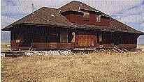 Along the Trans-Canada Highway, 40 kilometres east of Strathmore in south-east Alberta, an old Canadian Pacific Railway train station sits forlornly on prairie grass. The boarded up building, last used in the 1970s, is at a little used intersection, known only to visitors as Buffalo Jump, after an abandoned arts and crafts store meters away. The dusty train stop also had the company of a garage and service station, which now too sits with the prairie ghosts in the hot summer sun, derelict and long-forgotten. Submitted by Johnnie Bachusky. UPDATE:The railway station which sat on the site for many years has now been moved about ninety minutes west to the town of Cochrane, Alberta alongside Highway 1A. At the time of the move, there was talk about a restoration project and the opening of a gift shop / tea room, but there has been no work performed on the station as of this time. Right now, it is still sitting on blocks and more or less in its original condition. Dan Overes