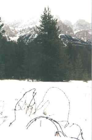 | Under the shadow of Castle Mountain, deep in the heart of Banff National Park, is the site of one of Canada's darkest memories - fading reminders of an internment camp built during the First World War.When Canada entered the First World War, more than 88,000 immigrants from countries at war with the country were required to register as "enemy aliens". Anyone of these immigrants faced the risk of being thrown into internment camps set up across the country if they were found by authorities to be without work, identity papers or failed to report regularly to law enforcement agencies.Under Canada's War Measures Act, more than 8,000 "enemy aliens" were put in 24 camps across the country, even though most were noncombatant unemployed civilians, and victims of that period's economic depression and wartime hysteria. It's estimated that two-thirds of the prisoners were of Ukrainian descent.Two camps were set up between 1915 and 1917 in what is now known as Banff National Park - one for winter use in the Cave and Basin area near the Banff townsite and the other at Castle Mountain, used during the summer months. The town camps housed as many as 600 prisoners and 180 guards.The internees were put to work in the park for 25 cents a day, their labours used mainly to build a roadway between the Banff townsite and Lake Louise. When at the Cave and Basin site, prisoners were forced on such projects as a golf course expansion, further road construction and bridge building.Living conditions at the Castle Mountain camp was described as grim and harsh, with at least one reported suicide and 60 escape attempts.Both park camps closed in 1917 and the remaining 47 prisoners were transferred to another camp in Ontario.The Castle Mountain site was quickly dismantled and left to the mountain ghosts. More than a decade ago, a cross made of poplar, 3 1/2 metres high and 1 1/2 metres wide, was erected in concrete by a roadway near the site to remind visitors of the tragic episode in Canadian history. However, it was torn down. But following intense lobbying the the Ukrainian Canadian Congress, the federal government finally agreed by 1994 to allow an official memorial and statue to be built near the site. The actual camp site is now hidden from roadside travelers by a forest, and park officials don't advertise its precise location as a means to deter those who illegally hunt for artifacts.But if visitors do stumble upon the site, there is little left, except for the grim reminders of barbed wire from the camp fences; the odd whitewashed stones, pieces of timber and scatterings of pots, tins and cans. Submitted by: Johnnie Bachusky |