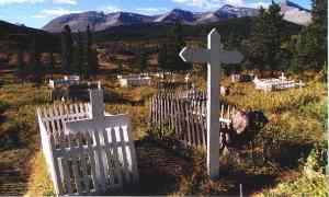 Lying just outside the eastern boundary of Alberta�s Jasper National Park, Mountain Park � with its spectacular back drop of towering Rocky Mountain peaks � may be in the most majestic and serene setting of any ghost town in Canada.The area�s vast coal deposits were discovered by American explorer John Gregg and his wife Mary in 1895, and they quickly attracted the attention of British industrialists and financiers.The Mountain Park Coal Company Limited was incorporated on May 5, 1911 and by 1914, the mine started producing and shipping good quality coal to markets by a newly constructed railway. The company and the town quickly grew and prospered, and became the most important operation in Alberta�s famed Coal Branch area. Mountain Park eventually swelled to a population of about 1,500, and was planned and designed to look like a peaceful mountain village. Despite its isolated location, the citizens of this booming coal-mining community organized a multitude of competitive sports and social events. The town had outstanding hockey, soccer, and baseball teams, and some of the finest athletes in the country played their chosen sport in the Rocky Mountain community at 6,200 feet above sea level. The town also had churches, a hospital, community hall, theater, a library with reading rooms, card rooms, billiards, parlor, and restaurants. Company managers also successfully recruited top caliber school teachers for the four-room school, a doctor and nurses for the hospital, as well as music teachers and musicians for the town band. The town�s prosperity continued into the mid-1940�s. But natural tragedies, floods, economics of operation, and customers changing from coal to diesel fuel, all took their toll and contributed to the closure of this once busy and bustling mountain village.The mine was eventually closed on June 19, 1950, and residents quickly left. Within a few years, most of the mine buildings and homes were either torn down and sold for scrap or became the targets of vandals. Today, there are only a few building foundations and some crumbling mine structures left for visitors to see.However, former resident and miner Robert (Bob) Bracko came back to the ghost town in 1994 and erected a historical plaque to honor the mine, town and its people. In 1997, many former residents, family members, and friends also came back, and lovingly restored the town cemetery, meticulously clearing away the buck brush and other debris. The historic cemetery, which had its first burial in 1913 and is the final resting ground for many First World War veterans, is situated at the highest elevation of any graveyard in Canada and the British Commonwealth. Submitted by Johnnie Bachusky. Submitted by: Johnnie Bachusky