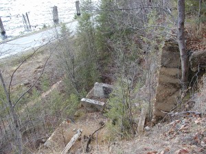Small townsite still. Ainsworth Hotel is nice place to stay. Beautiful scenery. Short drive (within 1 hour) to Nelson (to the south) or to Kaslo (to the north). Right on the shore of Kootenay Lake, not far from the Kootenay lake ferry to Crawford Bay (which puts you into the Mountain Time Zone on the East side of the Lake). Short drive (within 15 mins)to Cody caves and the Kokanee Glacier on a hard packed logging road - Inaccessible in the winter due to snow. And of course as the name indicates, wonderful hot springs. REMAINS: Some buildings surviving. Dock and mine remnants. Old Cemetary still existing. |