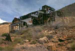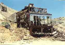 Near Mineral Park. REMAINS: A lot of mining remnants, a large boat. |