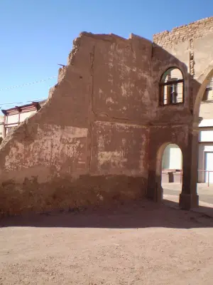 Directly on hwy 191, just south of Morenci, AZ. Behind a stone wall along 191. Visible from 191. Parking lot available, or drive through town... Very few residents - mostly vacant. REMAINS: Main street is all boarded up, and in ruins. Only one or two stores remain. |