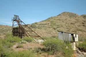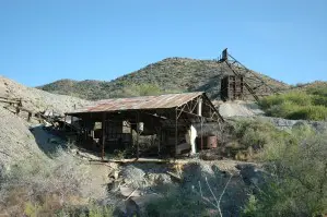 Easy to get to through Wickenburg. REMAINS: The nearby Monte Cristo mine and a few buildings, and the Gold Bar and the Black Rock mines. |