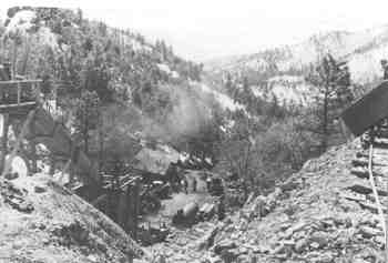 | Two wells and a meadow mark this spot today. The Crook Mine was discovered in 1874 by Ed Johnson. Thereafter a mill and about 14 other buildings developed. Arrastras, powered by water wheels, crushed over half a million dollars in gold over a period of about ten years. Operations shifted to Venezia when Crook City was bought out by Eastern corporations. The mine was reopened in the 1930's and the Venezia mill processed the ore. |
