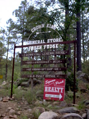 COMMENTS: Visit the general store and the old saloon which was moved from the ghost town of Oro Belle. There are many other things to do in the area so plan on making it a day trip. UPDATE: The Lane 2 fire is threatening the town of Crown King. Started 6/29/2008 as of 7/1/2008 the fire has reached almost 6,000 acres and come within 1/4 mile of the town. |