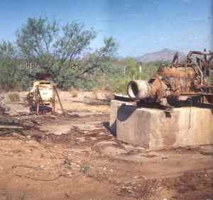 Post office was established in 1910 and closed in 1916. Was a RR station and there was some mining reduction activities that took place here. I was a resident of Arizona most my life until 4 years ago, when I moved to Oregon (1950 - 1998). In 1996 I visited Forepaugh and learned some interesting information. The pictures you have are of an airplane hanger. It seems that during WW II the Army Air Corps built an airfield there. It was used very briefly as a training base for glider pilots. There was a hanger, barracks, landing strip, shops, well pump, etc. All that remains is the hanger, airstrip (unusable), some of the pump and storage tank equipment, and the foundations of the barracks and shops. Seems that the barracks were there until 1995 when a fire burned them to the ground. I also learned that at least one trainee pilot was killed in an accident when the tow cable between his glider and tow plane snapped and wrapped around the glider's tail, sending his glider crashing into the nearby desert. Some information exists with the nearby town of Wickenburg, which owns the site. There was also a reunion of the surviving glider pilots in 1994 in Wickenburg. Submitted by Byron Porretta. |