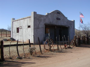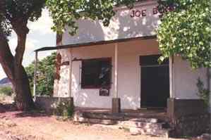 Gleeson (Turquoise) and the hills on the Southside of Dragoon Mountains were mined for many years by Indians for the decorative turquoise. These stones became a crucial part of trade and were used in decorative turquoise jewelry and art. When the white man came to the area, they found copper, lead and silver, but they kept the name of the camp - Turquoise. The town got a post office in 1890, but the mines closed and the town was abandoned after Jimmie Pearce found the gold by Commonwealth lot in 1894. In 1900 one Irish miner from Pearce, John Gleeson, searched the Turquoise area and registered the lot by the name Copper Belle mine. Other mines by the name of Silver Belle, Brother Jonathan, Pejon and Defiance followed after Copper Belle. The town were moved from the hills to the flatland and come closer to water, and Turquoise that lost its post office in 1894, opened again as Gleeson. John Gleeson sold his lots in 1914, but progress continued and copper production flourished during WW I. After the war, prices dropped down, production was reduced and the mines closed. The post office closed for the last time on March 31, 1939. In 1912 a fire destroyed 28 houses, but the town was built up again. When the mines played out in 1940, Gleeson became a ghost town. Today there are a couple of people who live here. Gleeson is a good place to examine. North of the town's Main Street is ruins of the hospital, and there is evidence of mining in the hills behind the hospital. Down the road from the hospital was a saloon/store that opened and closed a couple of times during the years and the saloon is closed now. Across from the store are the jail ruins (same as jail in Courtland) and foundation of the school. The road that leads north from the store will bring you to ruins of Musso House, which is blocked with a ‘No Trespassing’ sign. The Gleeson cemetery is west of the town on the main road to Tombstone.-Bobby Zlatevski -Bobby Zlatevski