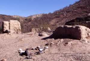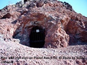 To get to Planet take Osborne Well Road, just before mile 143, before you reach Parker from Quartzsite, or take Swansea Rd from Bouse (on SR72) and drive to Four Corners. Here continue strait on Swansea Cutoof Rd and take Planet Ranch Rd on the right. Drive until you reach gate. On the right side are remains of Planet and Planet mine. Not problem for 2WD. Bobby Zlatevski REMAINS: Nothing. |