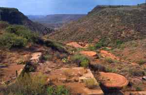 Richinbar's post office was established July 30, 1896 and was discontinued March 15, 1912. Richinbar was a gold mining town at which the Duquesne and Kentucky Standard Mining companies operated. Not much is written about the history of Richinbar but it is well worth visiting. Water for operations was piped in from the Agua Fria river in the canyon below and stored on top of a hill in what looks today like a giant swimming pool. The canyon side served as the trash dump and is littered with porcelain dishes and cups. Well worth visiting. ![]() Richinbar Courtesy Kurt Wenner ![]() |