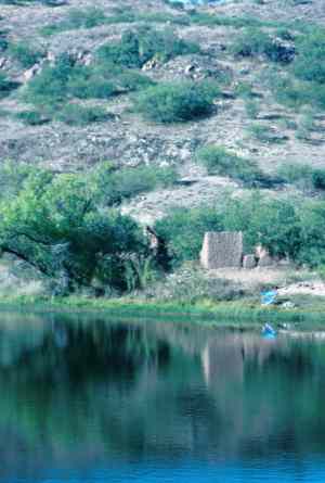 Ruby's post office was established April 11, 1912 and was discontinued May 31, 1941. Ruby is one of the best preserved ghost towns in Arizona. It is now undergoing restoration and you can visit the site if you help in the restoration. For each day of work you get a day of play. For forty years Ruby was called Montana Camp and in 1909 was changed to Ruby in honor of one Julius Andrew's wife. Julius Andrews was in charge of the camp store and was the one who applied for the post office. At one time over 150 children went to school in Ruby and over 300 men were employed at the Montana Mine.1941 saw the end of operations at Ruby and it has been a ghost town since. For more infomation on Ruby from Tom McCurnin, click here. For a current map of Ruby click here. For a map of the Montana Mine, click here. To see the Ruby Brochure, click here. - GT Ruby (Montana Camp) is 25 mile to the west after Peņa Blanca junction on SR 289. Possible to drive in 2 WD with careful driving. Ruby is one of the leading ghost towns in the country, passed only by Vulture who had more standing buildings. Ruby is total closed for visitors. Mining in the area below Montana Peak began first in 1870 (eighties) and town who grow up around became known as a Montana Camp. Owner of the general store, Julius Andrews give the city his name when the post office was established on April 11, 1912. He named the post office (and with this the city) after his wife, Lillie B. Ruby Andrews. Philip C. Clarke bayed Andrews general store in 1913 and build one bigger on the hill, were is still standing. Because the area were close to the Mexican border and attacks were almost daily, Clarke and his wife Gypsy had a weapons in every room of the house and store. Their son Dan, one popular Arizona man who died in 1922 told that his father send the mother to California to born a baby because the situation in Ruby were dangerous. In the times when all ranchers were attacked from the Mexican revolutionaries who crossed the border, once Clark were asked by a older man with name Guzman, what was that pipe looking apparaturess on front of his house? Clarke who loved to joking with the old and serious man, told him that was a pipe system witch made him possible (or: made him able) with a bottom beside his bed to let out the poisoned gas, and that gas were strong enough to kill one all regiment. Clarke enjoyed to see the old men walking far around from pipes, witch actually were pipes for the rein water. When Guzman returned one month later, Clarke asked him did he seen some revolutionary soldiers: -"Oh, yes..... The checked everything I had with me, but they only took my tobacco from me". Clarke asked him did they say they want to come to Ruby store and Guzman answered: -"Yes, they asked Me about everything and I tell them about your dead machinery - those pipes with the poison gas". Solders decided to avoid the Ruby store. After this Clarke say: -"I was much careful to talking about my dead spreading machine". Others were not so lucky. Clarke leased the store to Alex and John Frasier in 1920 and suggested them to be good armed. Les then two months later lied Alex dead beside cash register and John was shoot in one eye after he were forced to open the store's safe. John lived only 5 hours more. One of the two rowers were later killed when he refused to be arrested, but he were able to kill the deputy, and the another robber was never found. Clarke filed guilt for destiny of the Frasier brothers when Frank Phearson came to buy the store. Phearson was sure that the lawless was not so big and that attack was not possible. He became the next store owner and on august 26, 1921 were him self and his wife killed by 7 armed man. Their youngest daughter Margaret failed down when she tried to escape and when she looked up, the butcher (killer) stand over her, and with non known reason, he turned around and walked back in the store. Margaret Phearson Anderson which survived became teacher in Nogales and Tucson, and retired in 1980. Two of the 7 bandits were recognized when they escaped from Ruby. Placido Silvas and Manuel Martinez were arrested, brought to the court, convicted and send to be hanged. The Sheriffs car witch drive them to the jail in Florence tipped over, killed the Sheriff and wounded the deputy, and the prisoners escaped. Martinez were later captured and hanged in the Florence jail. Silvas were never found and that's possible hi is still in live today. The flourishing time in Ruby began in 1926 when Eagle-Picher Lead Company over-take the mining. The town had a electricity (made by diesel machines), doctor, hospital and one school with 3 teacher. Once were over 150 children witch joined the school. >From 1934 until 1937, Montana mine was a leading producer of lead and zinc in Arizona, and in 1936 was the third biggest in production of silver. The mine employed over 300 men, but ore died in 1940 and the town witch once had about 2000 citizens, became ghost town in 1941. Post office closed on may 31, 1941. Clarke's store which were intact until 1970, collapsed totally, but the jail not far from there is still standing. The school still standing with the basketball plate. On the south side of the city are mine offices and owners residence. Another buildings are visible from the road, from the little hill. Don't go in on the area without permission! Bobby Zlatevski