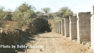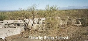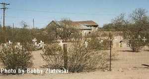 Sasco Road (via Exit 226 on I-10) witch lead to Sasco is paved the first 3-4 mile before the road turn to be dirt way, witch is originally abandoned railroad. Sasco is left and right of the road and possible to passing in 2 WD. Road is friendly all the way to Silverbell, but between Silverbell and Silver Bell you shall drive careful. Still possible to pass in 2 WD, but 4 WD is best for this part of the road. Sasco, witch standing for Southern Arizona Smelting Company, worked the ore from nearby Silverbell. In 1910 was smelter closed because lover incoming. Sasco was once a town with about 600 citizens, smelter, company houses, homes, saloons, stores and the Hotel Rockland. Daily drive the train to Red Rock and Silver Bell. Post office was open from July 10, 1907 until September 15, 1919. Today the memory of Sasco are all around in the area. It's possible to see foundation of the smelter, houses, railroad platform with the towns name written in the stone, "City Hall" witch originally were jail and the cemetery witch is par mile away from the town. Between many different explanation on the graves, is a memory about the great influenza epidemic in 1918-1919 witch costed more then 0,5 million Americans lives. About 0,1 mile east of the power line one dirt way lead to the south to powder house, foundation of two stone houses and until one water empty fountain. Bobby Zlatevski