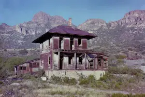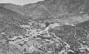 Silver King's post office was established December 21, 1877 and was discontinued May 5, 1912. Silver King was discovered once, lost, then discovered again in 1875. So much ore was taken from Silver King that a milling town was constructed nearby, called Pinal. Two hotels were constructed at Silver King, which neither owner liked. One day they had a shootout to see who would monopolize the hotel business in Silver King. Both were bad shots and missed each other but it is rumored that one was forced to take his meals standing up for the next few days. In 1888 the price of silver dropped and so did the town of Silver King. Today there is not much left. From the Pinal Drill, A Dec.17, 1881 OUR MINES, The Silver King. A Brief Description of the Richest Silver Mine in the World. The company was organized in San Francisco in May, 1877. The capital is $10,000,000, shares $100 each. During it�s entire existence, James M. Barney has been it�s manager and Aaron Mason it�s superintendent. Within the last six months, A.J. Doran has been acting Superintendent. The mine is five miles from Pinal at Silver King village. The works are at Pinal. The works consist of 20 stamps, six concentrating tables, three roasters, one large roasting furnace, five tanks &c for lixiviation, refinery and assay office. About 50 tons of ore are worked daily,hauled by teams from the mine, and on an average $20,000 in silver bars is shipped every week, as the product of the establishment. An enormous quantity of tailings covers acres of ground at the mill, containing large quantities of silver and copper. The base metals have. until within a few days, not been extracted from the ore, but works are now in operation extracting the copper. We have heretofore described the Silver King Mine and it�s apparent- ly boundless wealth.. Last week we had the pleasure. to accompany Mr. Doran on his visit to the mine, and in company with him and the foreman, Mr. Robert Bowen, passed through the labyrinth of levels and drifts, up the stopes, amongst the timbers, from floor to floor, in the windings and descents of this monstrous excavation. The main shaft has reached a depth of 730 feet. There are levels at 110, 250, 300, 350, 408, 510, 612, and 714 feet. All the ore that has been worked for one year past has been takne out between the 300 and 408 levels, and masses are standing in view on all sides. This large chamber, or stope, is timbered, as also the mine elsewhere, with pine from Oregon and Truckee, California. which costs here $45 per thousand feet. The posts are 12 by 12 inches and 14 by 14 inches, and the sills 10 by 14. In this large chamber which is 60 by 75 feet, we climbed 100 feet upwards amongst these timbers that appear as solid as adam-i ant. Nothing hut ore has been taken out of this large, now empty space. There are also several drifts from this chamber to the west and south, all in ore. On the 714 foot level there is one drift 54 feet to the north, all in ore bristling at you whereever you look. You find the ore in the quartz, in spar and in porphyry. From the 612 level there is a winze connecting with the 510 Ievel, all through white quartz and porphyry carrying rich ore, and masses of pure white quartz carrying lower grade ore. The 510 is, we think the richest level. There are native silver, antimonial silver and zinc blende prominent, and forming of itself a grand bonanza. The ore in the large 408 chamber is chiefly native silver, with polybisite and galena, carrying antimony, of great value in silver, On the 300 level there is a cross cut to the west, 35 feet in porphyry, and a drift to the east 60 feet through whiie quartz. We found quartz a width-of about 60 feet along the sides and then porphyry beyond. There is a body of spar running from the 408 level to the 250 level all the way up on the southeast side of the porphyry, which will probably run into the old works on the surface, from which so much rich ore was taken and shipped. Quartz, spar and porphyry appear distinct and also intermixed. The ore above the 250 foot level to the 110 level has been left intact for future use. In fact, the levels down to the 300, although much work has been done, are yet but for prospecting purposes. We have tried to see and find walls, but really we must say that none exist, for what appears to be a wall, that has been called a hanging wall, is but a seam with porphyry on the other side, carrying rich ore. Down in the depths at 730 feet it appears that the real ledge is found, the backbone, thus surmounted with an enormous mass of ore, of which some of the richest has been taken, yet so abundant that it seems inexhaustible. But there are also immense bodies of low grade ore, which will in time encumber the work, and must even now be inconvenient. This must be worked in a different manner and on a more economical plan, as also the tailings about the mine. - There is money enough in these lower grade ores to make the King forever famous, apart from the rich ores therein, and with suitable and more extensive machinery, the amount of yield is onlyva matter of industry. The near future will most probably confirm what now appears to us demonstrated, that the seams and courses of the mine with it's rich veins, run west of north and east of south and that the present mine is but a surface development in the heavy covering that rests upon a vast quartz body below, through which this volcanic maelstrom of molten mineral has been thrown, containing, all varieties of silver ore, combined with baser metals as if if were a witches cauldron. Larger, more extensive works are most imperatively called for. The mill has an abundant supply of water for 100 stamps or more. We have fuel plenty for considerable time from the desert, but the coal fields call loudly upon us and the timber close by these will supply all our anticipated w*nta of that kind. A narrow track railroad could he built, for a three months yield of this mine, connecting Pin