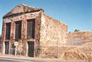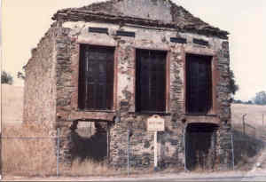 The Ginocchio store is all that remains of what was once Butte City, a thriving 1850's mining camp in the mother lode country. As early as 1854, Xavier Benoist had a store and bakery in this building. For a time, Butte City, located at the south side of Butte Basin, which was a section rich in auriferous deposits, rivaled it's close neighbor, Jackson. Today, the spot is typical of the many ghost towns reminiscent of California's early mining activity. A roofless stone building stands mutely beside the highway, in the midst of open fields where once a thousand miners' cabins stood. On the hill above, a lonely graveyard where long forgotten miners lie buried. Butte Peak, a high conical mountain visible for miles in all directions, still stands as sentinal. Submitted by bob stelow.
