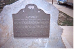 | The city of Carnegie lasted from 1895-1912.It had a population of 3500 people.It was also the site of the Carnegie Brick and Pottery Company.The town had numerous single-family dwellings,there were two large bunk houses with over one hundred rooms each,occupied mainly by Italian workers.Across from these was Tom Graner's Carnegie Hotel.Nearby were a bakery,Carnegie Livery Stable,Tom Collin's Saloon,the company store,post office and a bandstand.The town died from lack of money in 1912. Submitted by: Chris Geigle |