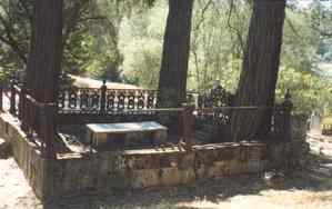 Here is where the great California gold rush had its beginning. Just north of Placerville, Coloma was the home of Johan Sutter whose name will be forever linked to the gold rush days. Sutter came to California from his native Switzerland in 1834 and was granted some land on the Sacramento River. It was toward the end of 1847 that Sutter began construction of his sawmill at a site the Indians called Cullooma. Sutter had a partner named James Marshall in building the sawmill. It was Marshall, not Sutter, who first discovered gold at Sutter's Mill. Ironically, neither Sutter or Marshall profited from a discovery which should have made them independently wealthy. Among the things to see while visiting Coloma is the home of James Marshall at the time of his discovery in 1849 as well a his grave which overlooks the site of his discovery. Ghosttowns.com Settled along the banks of the South Fork between Sutter's Mill and Mormon Island is the first important mining town of the 1848 gold rush days. By the summer of 1848 Coloma had about 300 frame buildings and a big hotel under construction. Because of the remoteness of the location, prices were outrageous. Almost any commodity sold at the flat rate of a dollar a pound. Shovels and picks were at least $50 each. Wool shirts sold for $50 each. Since the dollar was worth at least 100 times more than it is today, such prices were outlandish. But Coloma's hectic days were numbered. Richer localities up and down the Mother Lode were drawing away her residents. By 1870 Coloma was reduced to 200 residents. Where gold was discovered is now a state park with appropriate historical markers and an extensive museum. Some of the original frame buildings still stand and have been preserved as historical markers of the first town to emerge from the gold rush days of 1848. Submitted by Henry Chenoweth. ![]() Jail Courtesy Dolores Steele ![]() Wah Hop Store Courtesy Dolores Steele ![]() James Marshall cabin - 1860 Courtesy Dolores Steele ![]() Sutter Mill Cemetery Courtesy Dolores Steele ![]() Sutter Cemetery grave - 1850 Courtesy Dolores Steele ![]() Back in the trees - little Saint John Catholic Church - 1856 Courtesy Dolores Steele