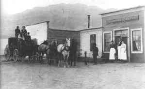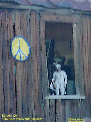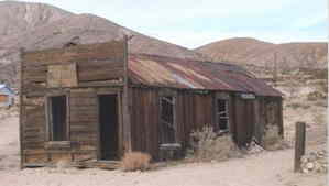 Death Valley and its surroundings was not a very hospitable place for a small group of men trying to make their way to the San Joaquin valley. Camped in the Argus Range, they were hungry and close to exhaustion when it was discovered the only working gun was a rifle with a missing sight. Killing any game for food seemed out of the question. An Indian guide said he could fix it. He took the gun, vanished into the hills and returned sometime later. The rifle had a new sight of pure silver. At the moment, the main objective was to reach the San Joaquin valley. Some years later, one of the original party, a Darwin French, returned to the Argus Range to locate the "Gun Sight Mine." It was never found. However, other mineral deposits were located and mining operations began. The site was then given the name of Darwin. Submitted by Henry Chenoweth. South of Darwin in the Coso Range is Darwin where rich silver-lead deposits were discovered late in October 1874. The town was named after Dr. Darwin French, an early explorer of the region. By the end of 1875, Darwin boasted two smelters, some 20 operating mines, 200 frame houses and more than 700 residents. The town reached its peak in 1876 with five furnaces and more than a thousand inhabitants. Today the ghost of Darwin is a collection of rude shacks and The Defiance smelter with its scattered and rusted machinery. Darwin, California: There's a great article in Desert Magazine, March 1979, page 8, Darwin, California... And The People who built it. Once again, DM continues in the Mulbarger tradition and interviews the last residents of Darwin who actually were there to build it. Written Annis Cuppett. Four photos. ![]() Darwin Courtesy Dolores Steele