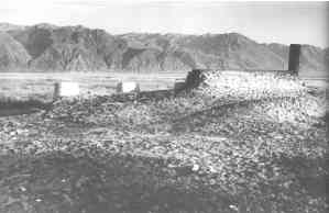 miles southwest of the paves Badwater Road. REMAINS: Foundations of the Eagle Borax Works is al that remains. |