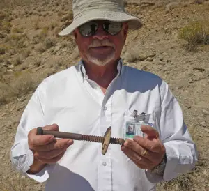 The ‘holy grail’ of ferroequinearchaeology. Visited the route escorted by the base archaeologist, with a UXO officer in a following truck keeping us on a short leash. The trail of the Monorail is evident by scattered wood and a trail of nails, bolts and hardware. Undisturbed artifacts are abundant. I am prohibited from publishing most of my tour photos.