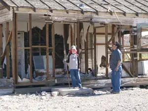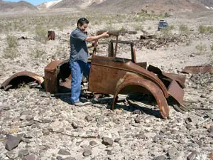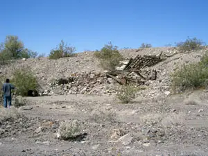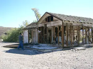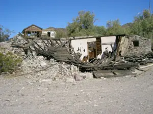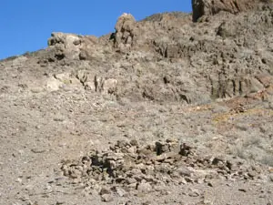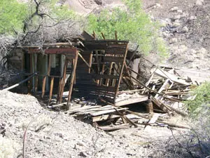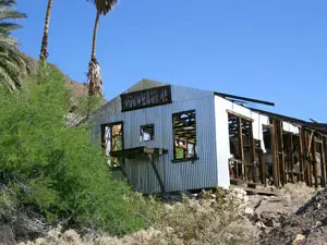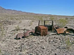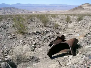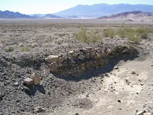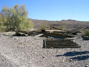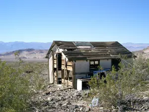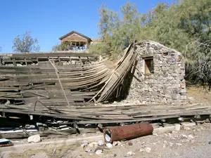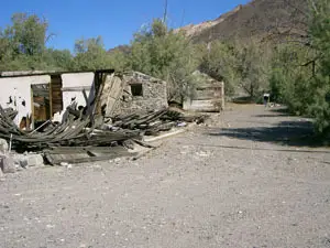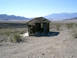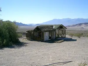 | In 1881 two young miners, Frank Denning and Stanley Miller, discovered outcrops of silver and copper here, and for some unknown reason named their find the Ibex (Ibex are mountain goats native to Europe, Asia, and North Africa, none of which are to be found within several thousand miles of this location, but the name persisted, now marking two mountains, a range of hills, two passes, a spring and a wash). Ibex is located in the far southeastern corner of Death Valley National Park and is rarely, if ever, seen by the average tourist. The lode was actually on the slope of the Black, not Ibex, Mountains about nine miles north of Saratoga Springs. With no proven deposits other than these surface veins they sold their mine in 1882 for a whopping $48,000. In the fall of that year a Chicago syndicate formed the Ibex Mining Company. They opened a fifteen-inch-wide vein to a depth of 80 feet, with ore assaying at $300 a ton. They erected a five-stamp mill in the Ibex Hills three miles southeast of the mine, the camp came to be called Ibex Spring. The mill began operations in May of 1883, but lack of wood and water made for sporadic activity. The refractory ores resisted milling, and a small smelting furnace was constructed in 1884, further taxing the sparse supply of fuel. The stifling summer heat often caused suspension of operations, but when everything was working the mine and mill could turn out $50,000 of bullion a month, although such months were rare. After seven years the company gave up, and it is thought that they may have broken even before quitting in 1889. A few �cousin jack� dugouts, remaining rock walls and a small smelter are evident from that era. About 1907 there was renewed activity when rich silver copper deposits were discovered nearby. Some of the ore was of high quality, but there was darn little of it, and due to the punishing remoteness of the site nothing came of this find. During the 1930s until the 1960s Ibex was resurrected as a residential town for talc mining at the Pleasanton, Moorehouse, Monarch and Rob Roy claims a short distance away. Talc, because of it�s asbestos content, is no longer favored as baby powder and it�s market vanished. Most of the structures that remain at Ibex, the mines and the car in the nearby tin can alley date from that era. They had a great panoramic view of Buckwheat Wash, but other than that it must have been a harsh existence. The Park Service had plans to bulldoze the place, but the Mojave River Valley Museum of Barstow stepped up to adopt the site and convinced the Park Service to spare the structures, which would be monitored to assess the rate of deterioration of the ruins. The spring, which was the reason for the camp's location, is still abundant today and the greenery that it produces in an otherwise rough desert landscape is visible from miles away as you approach by way of a laborious crossing of an eroded flood plain (4WD recommended). See Ibex soon before it�s gone forever. Submitted by: Bill Cook |