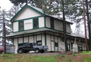 | Magalia was originally a stage stop on the Oroville-Susanville road, and had a few different names before becoming Magalia on November 14, 1861. Magalia has an interesting claim to fame in that A. K. Stearns, a workman, found the largest gold nugget weighing in at 54-lbs. It was worth $10,690. The Magalia train Depot was built in 1906 for the Butte County Railroad during construction of the Diamond Match mill in Stirling City, and has been a restaurant since 1977. |