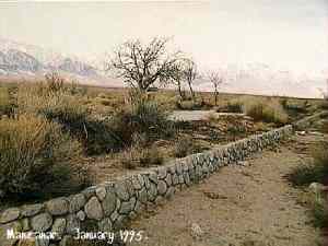 | Manzanar was extablished in 1941 as an internment camp for Japaneese Americand during WWII. It grew almost overnight from 0 to 10,000 residents. Tarpaper shacks all layed out in an organized city was home to these internees and their families until 1945. Though the residents were allowed into town, the only way to really escape was for the young men to join the US Armed Forces and fight in Europe. Many of these youngment were highly decorated heros. For five years after the war until the early 1950's Manzanar remained as a community until they returned to the cities of their residence prior to the war. Submitted by: Bill Steele |