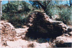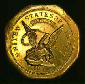 Mount Ophir was the site of the first private mint in california.The mint was built in 1851 by John Moffat who had been appointed to the office of United States Assayer for California by President Tyler.The Mount Ophir Mint turned out hexagonal gold slugs of fifty-dollar denomination.Louis Trabucco also had a well-established trading post there.It was well patronized by miners and packers.Next to the old Trabucco store once stood a large two-store frame hotel built some time after the stone store.Mount Ophir during the early 1850s was a large camp,and stores and tents straggled along the main road for quite a distance. Submitted by: Chris Geigle