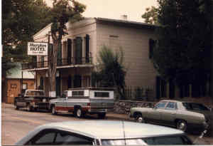 Murphys is known for a number of different reasons, one of which is the town where the Mexican bandit, Joaquin Murieta, got his start. Murphys is plural because the town was founded by brothers, Daniel and John. It is said Joaquin Murieta and his brother were arrested for a robbery they did not commit. At the time, they were no more than other Mexican residents in Murphys. They were tied to a tree, a group of miners dragged Joaquin's wife into the street and gang raped her in front of the brothers. The brother was hanged. Joaquin was flogged within an inch of his life and told to get out of town. Supposedly, this was the start of his career as a notorious bandit. The tale may be just that, but Joaquin would not be the first Mexican to be persecuted by American miners. Much of the original camp was consumed by fire in 1859, but much of that which was rebuilt can be seen today. Murphys is east of highway 49 out of Altaville. Submitted by Henry Chenowith. Northeast of Angel's Camp is Murphy's, easily one of the best-preserved towns on the Lode. Named for the founding brothers, Daniel and John Murphy, this out�of-the-way camp thrived first as a placer mining center and later as the gateway to the Calaveras Grove of Sequoia Giant trees. In the Murphy's Hotel built in 1856, one may still see in copies of old register books the signatures of Mark Twain, Henry Ward Beecher, Ulysses S. Grant, and Black Bart. |