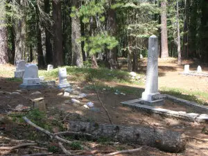 Dear Sirs, I am writing to provide some information to add to your site on Port Wine, California. My grandmother and her sisters were born and raised there. Her nephews operated a hard rock mine just east of town into the 1940s. Many of my relatives are buried in the cemetery. My family is most grateful for the restorative work done on the cemetery. The picture on your web site is all that remains of the Wells Fargo building. This building was largely in tact until some time in the 1970s, when the roof caved in (the area receives huge amounts of snow). Port Wine was a gold mining town. There are remnants of a flume along the hillside above the road to the west of the town site. Almost nothing of the town site remains. There are what appear to be a few foundations made of stone, but they are so grown over that it’s hard to tell what was once there. Terry Cross |