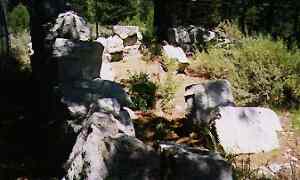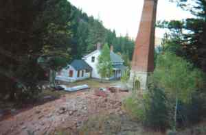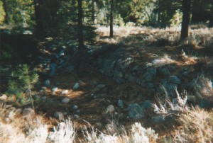 On State Highway 4--about 7 miles east of Ebbetts Pass...on the north side of the highway REMAINS: Ruins of old stone jail is all that is left at the townsite. The Alpine Hotel in Markleeville was originally the Fisk Hotel in Silver Mountain City. In 1885, it was dismantled, transported and reassembled in Markleeville where it remains today. |