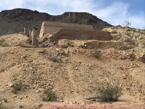 | This site was founded by a Sante Fe Railroad road master, John Suter, who in 1898 found gold here while looking for water. He claimed the site naming it Bagdad and later sold it for $100,000. The site went through a few name changes, first called Rochester(the majority of the mine's board were Stedman family members from Rochester, New York.), then Stedman, and even Bagdad for the deep mine that's located just south of town. However Stedman was chosen when officals pointed out there already was a Rochester in the county. The owners built a mill on the Mojave River at Barstow as well as an 8-mile railroad south from the Sante FE tracks at Ludlow, the Ludlow and Southern. Even when the Panic of 1907 closed over half the mines in California and Nevada, the Bagdad stood firm for more than 10 years, ultimately it produced half the recorded gold in San Bernandino County. Eventually operations became less profitable and the eastern owners sold their holdings, and the mine went into recievership. In the mid-1930s, the railroad was sold and the track shipped to the Philippines. Some buildings still remain in Stedman after vandals set fire to the site. Submitted by: Nick Walrath |