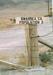 Swansea was built in 1870 to support the nearby camp of Owens Lake. Owens lake held the furnaces for smelting some of the ore from Cerro Gordo. While the furnaces were in Owens Lake, the workers lived at Swansea.Today there are a few crumbling walls left at the site. ![]() Furnace and Mill was built here by Col. Sherman Stevens in 1869 and used until March 1874. James Brady assumed its operation in 1870 for the Silver-Lead Company and built the town of Swansea during that next few years the output of this furnace and another at Cerro Gordo was around 150 bars of silver every 24 hours, each weighing 83 pounds. Courtesy Dolores Steele ![]() Swansea Courtesy DAVID A. WRIGHT Great Basin Research ![]() Swansea Courtesy DAVID A. WRIGHT Great Basin Research |