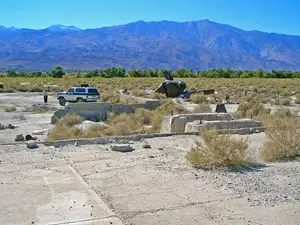 5 miles east of the town of Big Pine. REMAINS: Foundations from several buildings are the only remnants still existing today. |