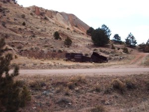 | In 1877 an E. C. Bassick, a former sailor, worked at the Centennial Mining Company on nearby Tyndal Mountain. It is said he took the same route to work every day, walking from his cabin to the mine. On his way to work one day, he stumbled over some rocks that looked as if an assay might be in order. It was. The ore was worth $30 which was more than he made in a week as a miner. Thus was born the fabulous Bassick mine. His first carload of ore brought $10,000. He took out more than a half-million in gold and silver before selling the mine to an Eastern company the following year. In all, more than four million dollars in gold and silver was produced. The peak year was 1882 when more than 1,000 persons made Bassick their home. The town is silent today but many of its buildings remain. Submitted by Henry Chenoweth. |
