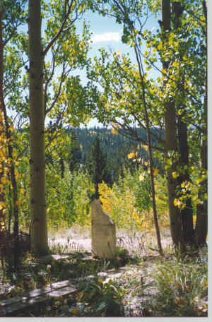 | This camp was named for Joe Higgenbottom who was named "Buckskin Joe" for the leather clothing he wore. Legend has it the mine was found while a man named Harris was deer hunting. He shot at his prey and thought he hit it but the deer ran off. In searching for the bullet or traces of blood, he found the bullet and it had lodged itself in an outcropping of placer gold. More than 5000 people showed up in this town by 1861. By 1864 the town was deserted and the mother lode had played out. Ranches continued in the area for a long time and some of the buildings at this town were carted off to nearby Fairplay. |