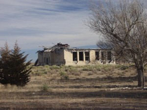 Lamar, Colorado is the closest town of any size. From Lamar, head north on U.S. 287 for approximately 25 miles until you intersect Colorado highway 96. Turn east (left) 10 miles and Chvington is right on the highway. REMAINS: There aren't any full time residents in Chivington at the present time (November, 2001). What is left of the town is shown here in the photos. |