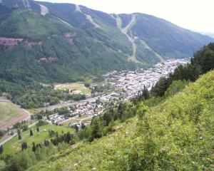 | Columbia was just another camp along the San Miguel River in the late 1870s. It was a silver mining camp at the time and prospered until the silver crash of 1893. The camp was almost deserted when soon thereafter rich gold properties were found and another boom began. Sometime before the gold strike, the name Columbia was changed to Telluride and the rest is history. However, Telluride as a mining town was not without its dark side. In 1901, the town experienced its first major strike that was the forerunner of vicious labor wars that were to last until 1905. Men were killed and others injured until military troops were called to establish order. Telluride also had its snowslides. The worst years were 1902 and 1906 when scores of lives were lost in avalanches. One hundred persons lost their lives in the winter of 1905-1906. Not a ghost town in any sense of the word, it is included here only for the reason its history as a mining town is today submerged in its reputation as a tourist and winter sports center. Forgotten or not even known is its mines have produced about a quarter of a billion dollars in precious metals and many of its best mines are still operating. Submitted by Henry Chenoweth. |