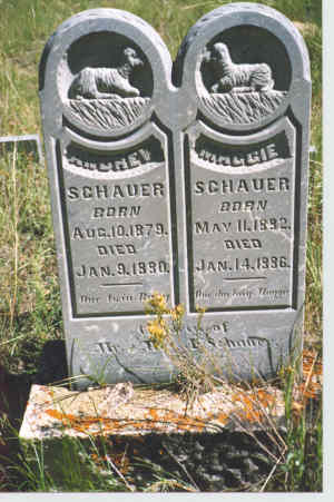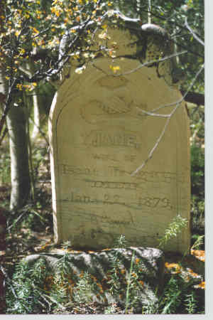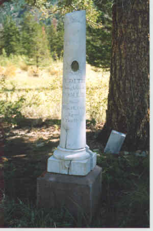 Although gold gave Georgetown its start, it was silver that gave the town the honor of being the most important silver camp in Colorado until 1878 when it was surpassed by the town of Leadville. Georgetown was a relatively orderly town. It had its share of undesirables but there were fewer killings and less violence. It could also claim to have the most posh hotel west of the Mississippi. It was Louis Du Puy's Hotel De Paris. Born in France, Du Puy squandered an inheritance and came to Georgetown to recoup his fortune. He bought a building on Alpine Street and remodeled it into the hotel. Its opulence was undreamed of in a mining town as was its cuisine. Du Puy first approved guests before they became guests. Many were turned away for reasons known only to Du Puy. Georgetown could have gone the way of many mining towns, but it decided to stay alive. Its buildings are in good condition and a good road makes the town very accessible. It is almost due west of Denver on highway 40. Submitted by Henry Chenoweth. ![]() Jain died 1879 Courtesy Dolores Steele ![]() Edith - died 1879 - aged 7 yrs. 10 mo. Courtesy Dolores Steele ![]() Andrew - died 1887 -"Our twin baby" Maggie - died 1886 - "Our darling Maggie" Courtesy Dolores Steele