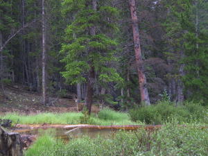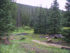 | Hall Valley is located in Handcart Gulch, which another small camp is named after. The gulch was named for the handcarts that miners used to use to pull outfits up the steep valley walls. It was a rowdy area that reached its peak in 1876-77 when there were several hundred unruley miners here. Today a tumble down cabin and some ruins mark the site. |