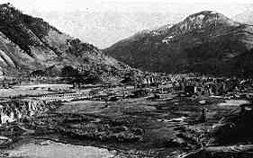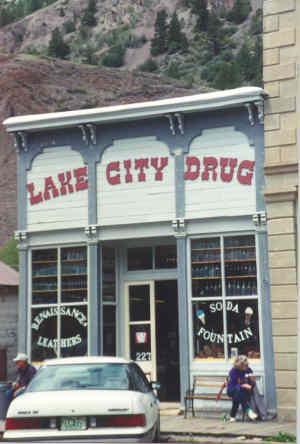 Lake City owes much for its survival to Indian Chief Ouray's control over the savage Utes. Freemont's group of explorers first discovered gold in1848 in the valley where Lake City is located. Constant fear of being scalped by the Utes kept prospectors and miners from the site until 1874 when the Bunot Treaty opened the valley to whites. Lake City had its most productive years 1876 and 1877. The population had grown to 2,500 and the town had about 500 structures. Around the turn of the century, Lake City began to go down hill and by 1902; the population had decreased to about 500. Today, it offers numerous attractions to the tourist, the vacationer and the fisherman and hunter. Cabins and campgrounds are available. Submitted by Henry Chenoweth. Just outside Lake City is a memorial to the Alfred Packer Massacre. It seems that Alfred was out prospecting in the mountains with five of his friends in the mid 1800's, and when the going got rough, Alfred killed his friends and ate them to stay alive. He was caught with Human "Jerky" in Lake City and put on trial for cannibalism, but never convicted. It seems this was a common occurence but the people wanted to make an example out of Alfred. - Todd Underwood