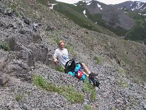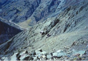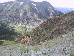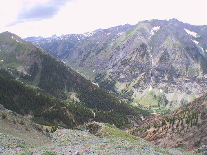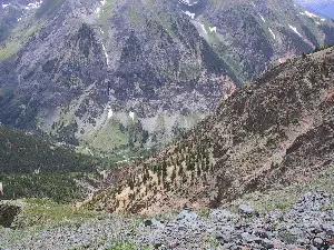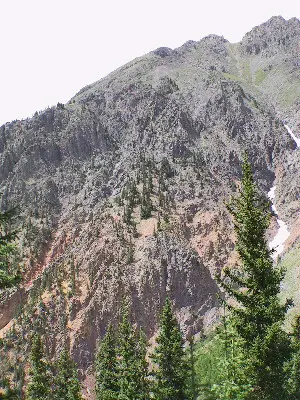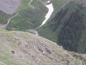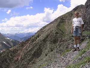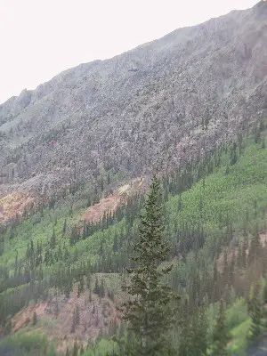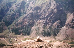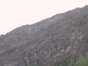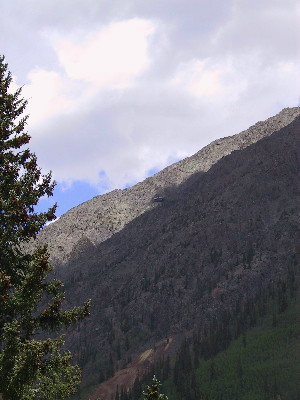 Named the Old Hundred after the 100th Psalm in the Bible, this mine, which supported enough people to be its own town, was located just above Niegoldstown. Most of the veins were originally located by the Niegold brothers and as you can see from the pictures, they cut plenty of holes in Galena mountain almost all the way to the top. One of the biggest veins was near the top at what is called the seventh level, or 7 level. There are no roads to site and the only trail passes 300 feet above the buildings. Originally the trail was wider then it is today, but once they reached the point above the buildings, they had to lower the supplies down by ropes. At the 7 level, there is a boarding house and a large tram house. This was the final stop on the tram that came up from the bottom near Niegoldstown. There were also numerous buildings at the 5 level but they were destroyed by fire. Recently, efforts were made to stabilize the buildings at the 7 level and supplies had to be brought in by helicopter with the pilot hovering just 10 feet away from the cliff. In July 2001 we attempted to hike the trail and got about 2/3rds of the way there and turned back. The trail starts out on very steel hills at somewhere aroun 11,500 feet and its a long way down. About 2/3rds of the way through, the hills give way to near vertical cliffs that drop thousands of feet into gulches and the trail is just wide enough to fit your two feet on. Knowing that the last 300 feet was straight down to the boarding house with no trail at all, we decided to turn back. There is a book by Scott Fetchenhier called "Ghosts and Gold", who owns Fletchs shop in Silverton that gives the complete history of the area. Stop by and see him when you are there and you might catch him if he is not out motorcycling the hills. Submitted by: Todd Underwood THERE WAS SCATTERED MINING AND PROSPECTING OUT CUNNINGHAM GULCH AT LEAST AS EARLY AS 1871. THE NIEGOLD BROTHERS ARRIVED IN THE AREA IN 1872 AND BY JUNE FILED A CLAIM ON THE NUMBER 7 LEVEL WHICH IS WHERE THE PRESENT OLD HUNDRED BOARDINGHOUSE IS LOCATED. BY 1876, THEY FILED A CLAIM ON THE NUMBER LEVEL ALMOST DIRECTLY BELOW. (THERE WAS A SIMILAR BOARDINGHOUSE AND BUILDINGS AT THAT LEVEL ALSO,BUT WERE EVENTUALLY DESTROYED BY FIRE). THE NIEGOLDS COLLECTION OF CABINS AND BUILDINGS AT THE BASE OF THE MOUNTAIN NEAR STONY CREEK WAS CALLED NIEGOLDSTOWN. THOUGH SHORT LIVED, THE TOWN EVENTUALLY HAD A SALOON, HOTEL, STORE, AND A POST OFFICE. BEGINNING IN SEPTEMBER 1904, CONSTRUCTION WAS STARTED ON TRAILS AND BUILDINGS AT THE MINE SITE BY THE OLD HUNDRED MINING COMPANY. THE OLD HUNDRED MINING COMPANY WAS ORGANIZED AND FINANCED BY SEVERAL FINANCIERS EARLIER IN 1904. THE NIEGOLDS STILL RETAINED AN INTEREST IN THE MINE. ONE TRAIL WAS BUILT TO THE NUMBER FIVE LEVEL AND ONE TO THE BASE OF THE CLIFFS BELOW NUMBER FIVE LEVEL. THE THIRD TRAIL WAS BUILT TO THE ORIGINAL TUNNEL AND WAS ABOUT 300 FEET ABOVE THE SOON TO BE BUILT NUMBER SEVEN LEVEL BOARDING HOUSE. THIS TRAIL ALONE COST $32,000 ! AT THE TIME THE TRAILS WERE MADE JUST WIDE ENOUGH FOR MULES AND HORSES TO PASS. MATERIALS TO CONSTRUCT THE BUILDINGS WAS BROUGHT UP BY MULE AND A ROPE AND WINDLASS WAS USED TO LOWER IT TO THE CONSTRUCTION SITE BELOW. TODAY, YOU FOLLOW THE TRAIL (MUCH NARROWER NOW) TO A POINT ABOVE THE BOARDINGHOUSE AND SORT OF SLIDE DOWN TO THE SITE ! IT TOOK US 45 MINUTES TO SCRAMBLE BACK UP TO THE TRAIL ! A MILL WAS ALSO CONSTRUCTED IN THE VALLEY BELOW TO PROCESS THE ORE. IN 1908, THE MINE WAS CLOSED AND THE BOARDINGHOUSES WERE ABANDONED. THE MINE NEVER MADE ENOUGH MONEY TO PAY FOR THE INVESTMENT. OVER THE YEARS SEVERAL OTHER ATTEMPTS WERE MADE AT MINING, BUT TO NO AVAIL. THE ROOF OF THE NUMBER SEVEN LEVEL CAVED IN DURING THE WINTER OF 1983-84 BUT THANKFULLY ABOUT TWO YEARS AGO IT WAS RESTORED. - Jim Pershing. |