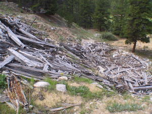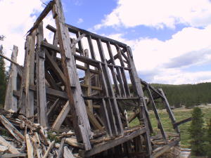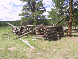 | Pie Plant was part of the activity at Dorchester but had a life of its own. The Pie Plant mill was used to mill ores from the mines along the Taylor River. In addition there was some lead and silver mining in the immediate vicinity of Pie Plant.In later years it became a cow camp. Submitted by Henry Chenoweth.