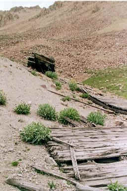 Tasmania Mining and Milling Co. represented a group from Philadelphia and were working about 30 claims year 'round. Even thought there was a spurt of activity and some building going on, the mine closed operations in the early 1900's. (By the way, the Tasmania Mine and accompanying structures is on private property). Submitted by David Wright.