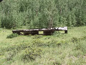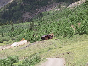 Located on the Alpine Loop. REMAINS: A few crumbling cabins. |