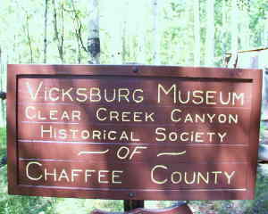 Vicksburg was founded after prospectors from Leadville camped out in Clear Creek Canyon and their burros wandered down to the creek. The next day the prospectors found their animals and also found good float in the creek. Many towns sprang up along the creek including Vicksburg which today has about 10 standing cabins along with a great museum that is open on the weekends.