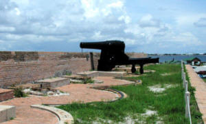 On the west end of Santa Rosa Island near Pensacola. Take US 98 West to SR 399 (J. Earle Bowden Way) to get to the island. After severe damage from Hurricane Ivan in 2004, the Fort Pickens Museum and Visitor Center are closed indefinitely. Fort Pickens Road is also closed due to damage, but may re-open by Spring 2007. Until repairs are completed, Fort Pickens is accessible by boat, or by hiking or biking (14 mile round trip from the entrance gate). Road is now open! REMAINS: Most of the original fort |