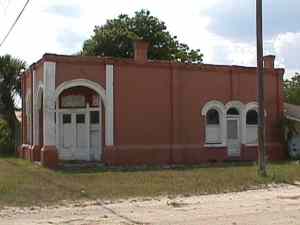 | Kenansville was an late 1800's cattle town on the now defunct Okeechobee spur of the Henry Flagler's Florida East Coast Railroad. The railroad did run right through town but the tracks and the depot are gone (see picture). The place was given the name Kenansville in 1914 in honor of the third wife of Henry Flagler who was the former Mary Lily Kenan. Legend holds that the hotel is the hotel that inspired a young Elvis Presley to write his hit "Heartbreak Hotel". (note the painted sign on the hotel archieve picture) The town, as in other towns along the Okeechobee RR Spur, died when the railroad was pulled out. There is a small resident population of farmers and cattlemen in the area. The hotel is being renovated by a local land owner. Notice the dirt road which went to St. Cloud in the downtown picture. The old hotel is on the left and the Kenansville Bank is on the right. Further west on CR523 you can tour the old Kenansville Cemetary. Turn left there and follow the road til it dead ends at a left turn dirt road. This is the Old Peavine Road which runs out through the Florida scrub and Hammocks. This road is one of the old pioneer roads of Florida that few know about. The road is dirt but good and you can get a feeling of what the old Florida looked like. It dead ends on US 60 so you cannot get lost. Submitted by: Mike Woodfin |