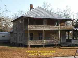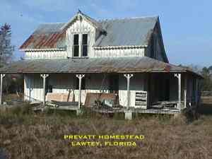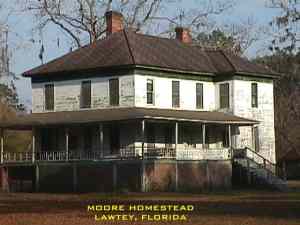 The small town of Lawtey owes its existence to the dreams of 30 Chicagoans who in 1877, came south to find a better life under the warm Florida sun. Captain Thomas Burrin had established a sawmill on 18,000 acres. Burrin donated 220 acres of land for a town and to sell additional acres for $5.00 an apiece. The name Lawtey was the son-in-law of one of the new residents. In 1885, 250 people lived in Lawtey wich now boasted a school house, several stores, and a cotton gin. 82 acres of Orange trees was the current crop. Later Strawberries was the main crop until the depression when the towns economy died. Lawtey, at this time, was inhabited mainly by wealthy northeners who avoided mingling with the town's "crackers". Most of the Chicagoans saw the later settlers of Lawtey as outsiders and resisted any efforts to incorporate them in the community. Some of the wealthier Chicagoans built stately homes during this time of wich some are pictured here. The early 1900's saw the introduction of a violent element to Lawtey, and shooting scrapes became common. Those residents who dared venture out after dark often took along company in the form of a gun. Rival gangs vied for power in Lawtey, and murders were frequent. The town economically never recovered from the depression. Today's town budget depends on the speeding tickets written by the "Silver Bullet", the local Sheriff. Other than that the town is virtually a ghost town or at least semi-ghost. Submitted by: Mike Woodfin