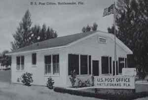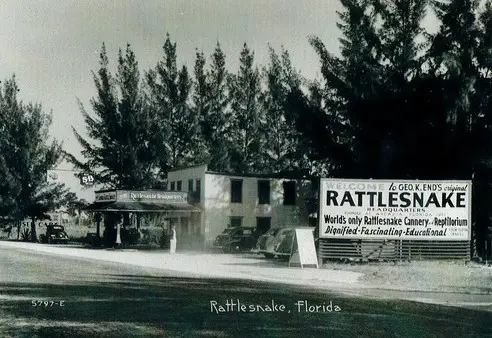 In the 1930's a gentleman by the name of George End moved from Arcadia and started a Rattlesnake canning business in what he called the town of Rattlesnake. He was granted a town and a Post Office. He had a snake pit attraction, general store, post office, and a cannery for Rattlesnake meat. he died from the bite of one of his own rattlesnakes. Although it was annexed to Tampa in the 50's the name still appears on some sectional maps. Submitted by: Mike Woodfin
