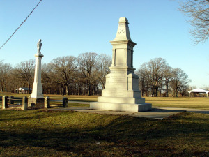 | This settlement became famous because of the Indian Creek Massacre which occurred on May 21, 1832. The massacre was one of the events that were used to justify the Black Hawk War. While at the time it was thought to have been sanctioned by Sauk Chief Black Hawk, today historians generally agree that Black Hawk had no involvement at all in the incident. Instead it was most likely started by a settler named William Davis and his refusal to remove a dam. Davis was a blacksmith and a mill operator and had dammed Indian Creek, violating Native American water rights and threatening a vital source of food to a nearby Potawatomi village. Specifically, Davis had raised the ire of Keewasee, a young Potawatomi who lived in the village. Keewasee requested Davis remove the dam but his pleas went unheeded and were contemptuously denied. Keewasee had tried to tear down the Davis dam but was caught while doing so and beaten by Davis with a hickory stick. At the same time, the Black Hawk War had erupted in Illinois and the first battle at Stillman's Run proved to be a victory for Black Hawk's band. This event may have also encouraged the assault at Indian Creek. Though warned by Potawatomi Chief Shabbona of possible hostilities, Davis chose to stay and persuaded a few families to stay as well. In all 22 people were present on the day of the attack. On the afternoon of May 21, 1832, between 20 and 40 Potawatomi and three Sauk, led by the notorious outlaw Mike Girty attacked the Indian Creek settlement. Girty was a white man who had allied himself with local Indians and was known as the White Savage. The attack was so swift; the settlers had practically no time to organize any resistance though it is thought that Davis was able to kill one warrior before he himself was killed. The attack lasted approximately 10 minutes. During the attack 15 people (including women and children) were killed and 2 young women were taken prisoner. The remaining 4 survivors, one of whom was wounded, escaped to Ottawa where they reported the massacre. The news lead to mass hysteria amoung the local white population. The two captured women were held for 11 days and then ransomed for some horses and food. The Indian Creek massacre soon became one of the most famous and well publicized incidents during the Black Hawk War. At the Battle of Bad Axe in Wisconsin, the massacre was used as a battle cry which ironically also turned into a massacre of Black Hawk's followers who were mostly women and children. Submitted by: Brian Tjernlund | ![]() Monument at Indian Creek Massacre site. Courtesy Brian Tjernlund |